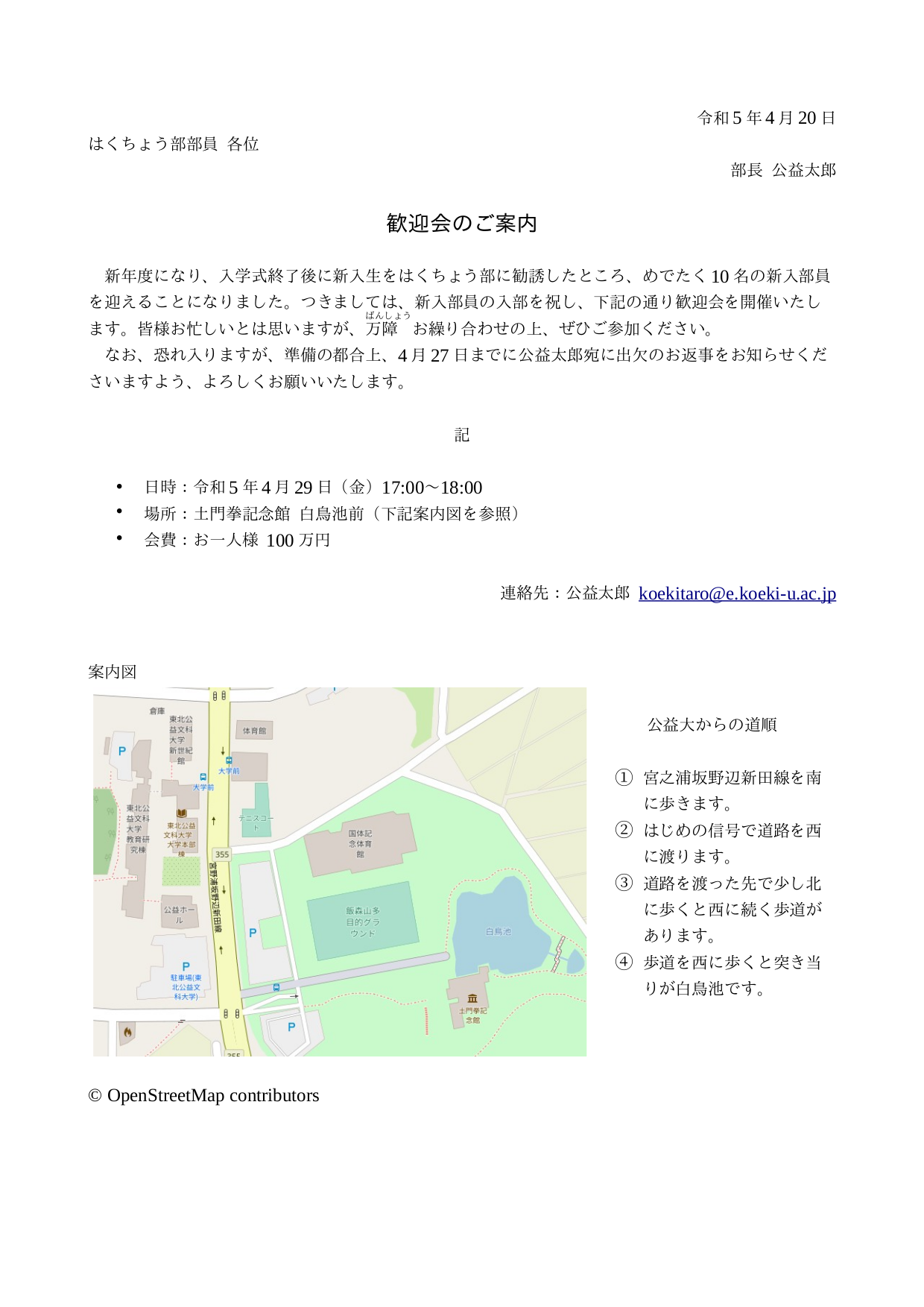 完成した案内状の ODT ファイルはMoodle Server(非公式) の第6回の課題に提出すること。